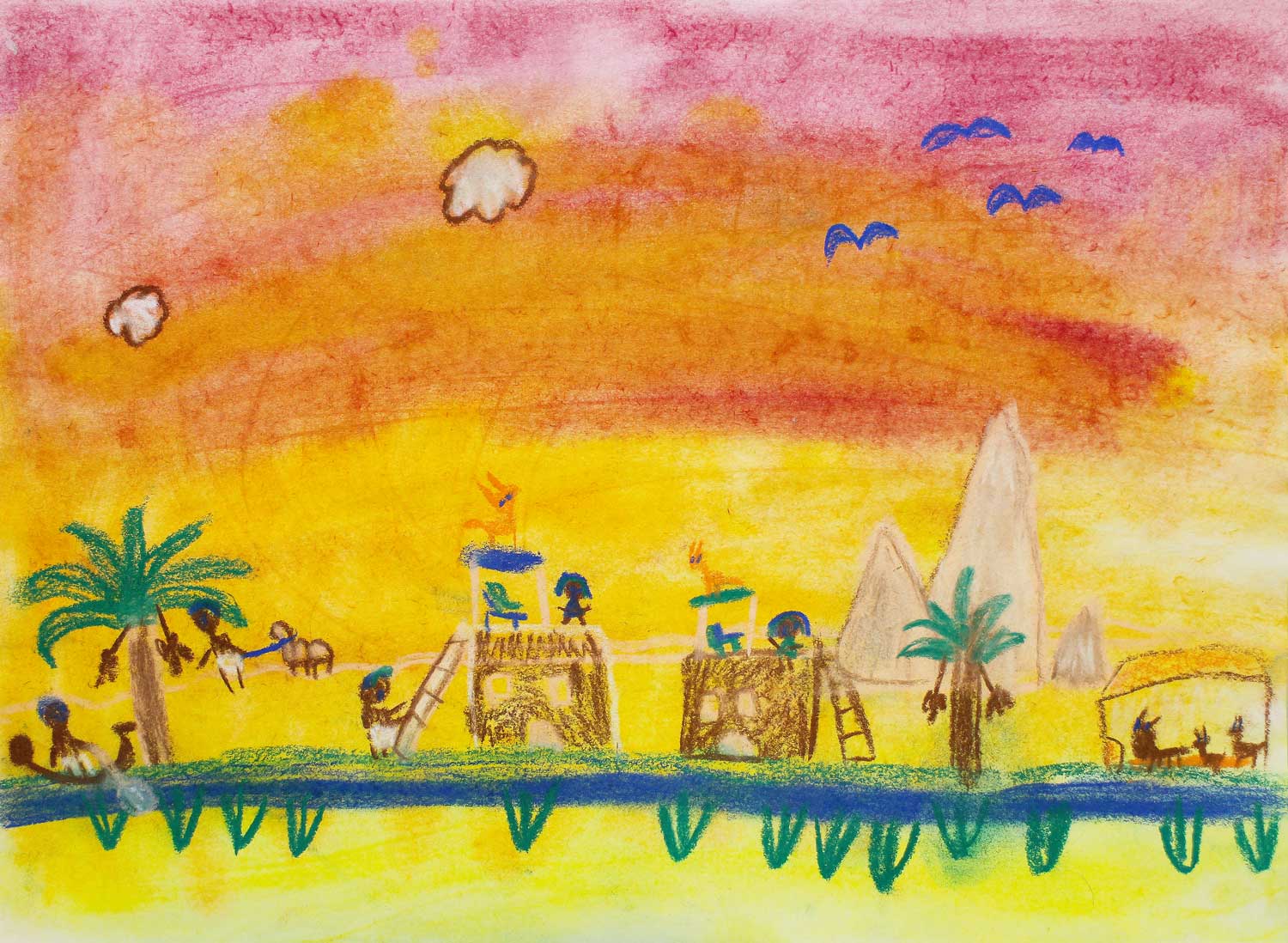 From coastal vistas to sunsets over the sea, and turbulent crashing waves to seeking shelter under umbrellas on rainy days, our Member School student artists have often found artistic inspiration from water.